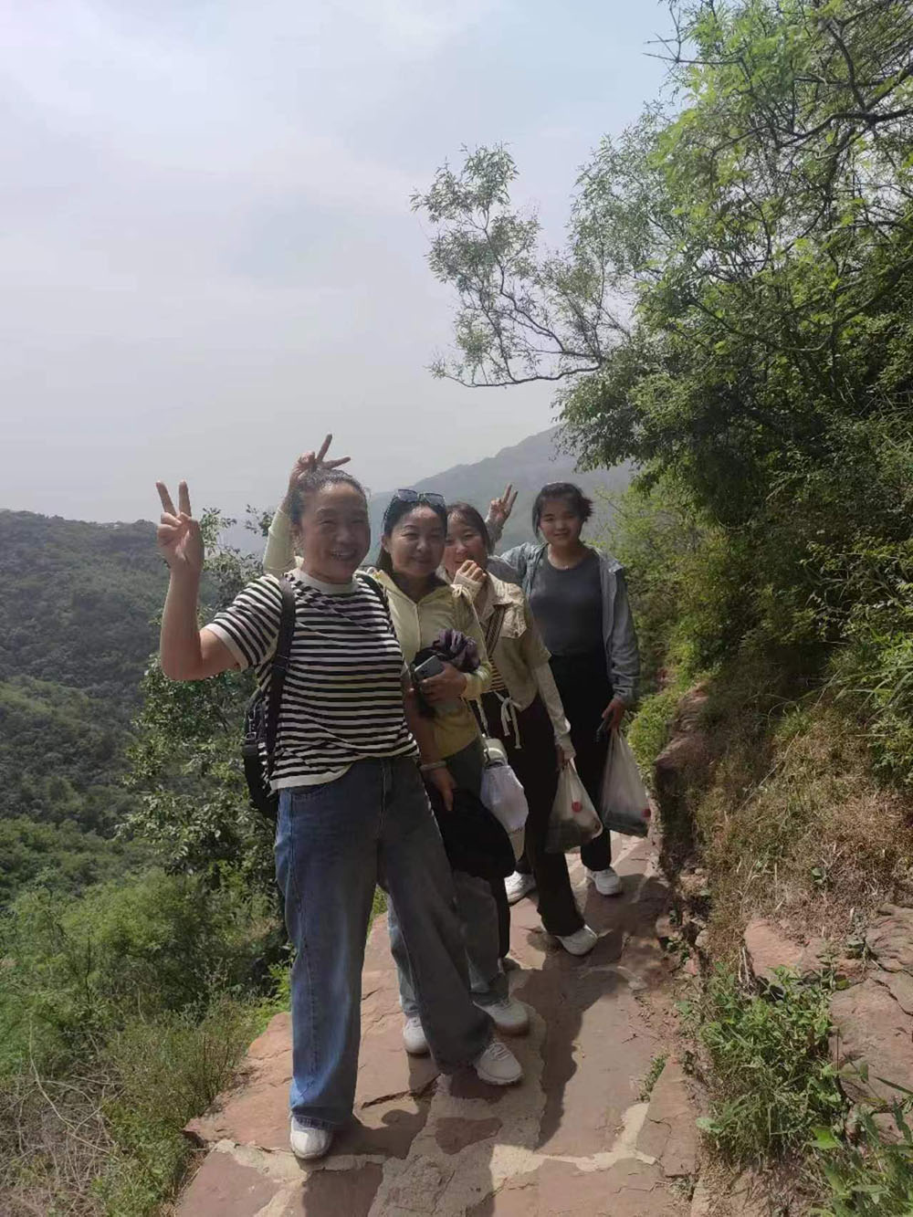 到達(dá)景區(qū)后,大家乘坐景區(qū)內(nèi)小火車來(lái)到趙匡胤千里送京娘的青銅雕像前合影留念。撫摸著青銅雕像,品味著這個(gè)凄美的愛情故事,感慨萬(wàn)千。隨后,大家乘上游船,欣賞京娘湖碧波蕩漾的旖旎風(fēng)光,感受著一線天峰林絕壁的壯美風(fēng)景。到達(dá)碼頭后,大家拾級(jí)而上開始登山。隊(duì)伍分為前鋒、后營(yíng)、中軍,團(tuán)隊(duì)前后呼應(yīng),協(xié)調(diào)行動(dòng)。上山的路雖然很陡峭曲折,有的路段甚至沒有臺(tái)階,但大家相互鼓勵(lì),相互加油,堅(jiān)持著向上攀登,向上攀登。中午,在山里人家簡(jiǎn)單用餐后小憩一會(huì)兒,午后繼續(xù)向山頂發(fā)起沖鋒。每當(dāng)大家疲憊至極時(shí),就停下來(lái)休息一下,吹著清爽怡人的山風(fēng),回眸走過的山路,又是一番別樣的風(fēng)景,一身的疲憊和勞累一掃而光。短暫休息后,大家繼續(xù)向上攀登,有的員工走不動(dòng)了,落在了后面,大家就扶一把,拉一把,幫助他們跟上隊(duì)伍。在大家的共同努力下,終于成功登上了宋祖峰的頂峰,整個(gè)團(tuán)隊(duì)沒有一個(gè)人掉隊(duì)。特別是車間女工表現(xiàn)的非常頑強(qiáng),體現(xiàn)了不怕苦不怕累、積極向上的精神風(fēng)貌。團(tuán)隊(duì)的一些老員工,還有員工家屬,不管是老人還是孩子,都表現(xiàn)的很好,堅(jiān)持到了最后,站上了峰頂。